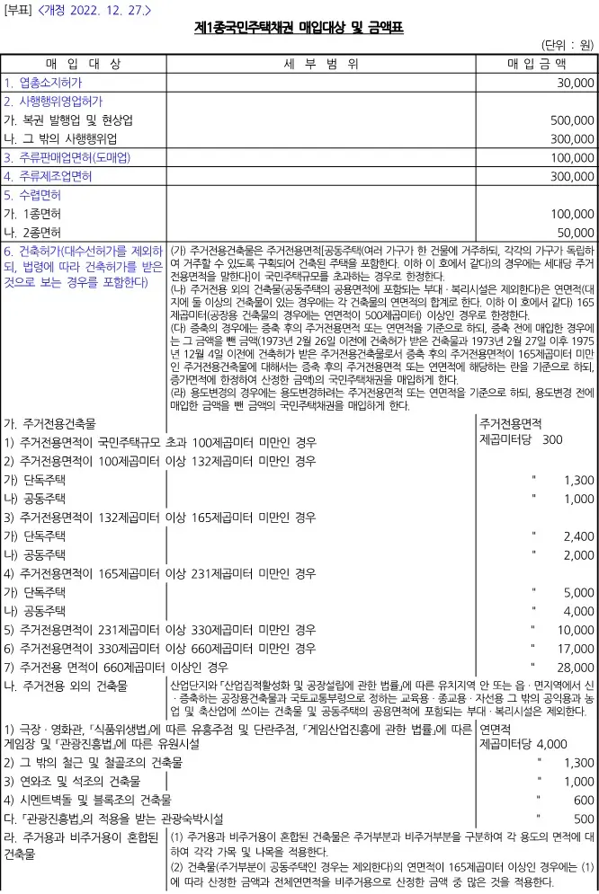 🎯 매입의무 면제 기준 : 제1종 국민주택채권 매입의무 기준에 대한 세부기준입니다.