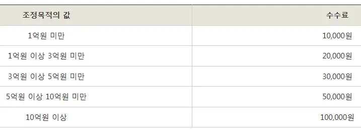 👉 조정목적의 값을 산정할 수 없는 경우 신청인이 내야 하는 수수료는 1만 원으로 합니다.