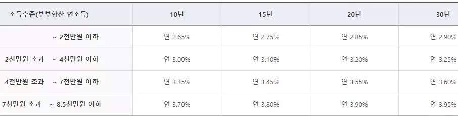 ✅ 기준소득(부부합산 연소득) : 6천만 원 이하. 단, 생애최초 주택구입자, 2자녀 이상 가구는 7천만 원 이하, 신혼가구는 연간 8.5천만 원 이하