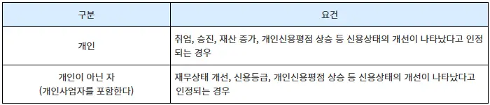 ① 신용 공여 계약을 체결할 때, 계약을 체결한 자의 신용 상태가 금리 산정에 영향을 미치지 않은 경우, ② 신용 상태의 개선이 경미하여 금리 재산정에 영향을 미치지 않는 경우