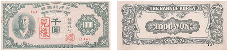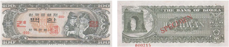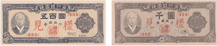 ✔️ 이후 북한군이 조선은행권을 불법으로 발행하자, 1950년 8월 28일에 대통령 긴급명령을 통해 조선은행권과 한국은행권을 1:1로 교환하고 조선은행권의 유통을 중지시켰으며,