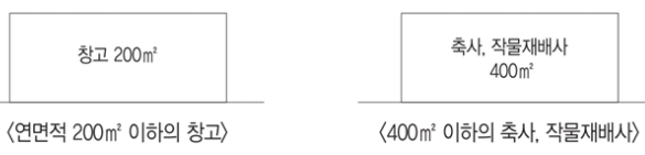 ⑥ 읍·면지역에서 건축하는 연면적 200제곱미터 이하의 창고 및 연면적 400제곱미터 이하의 축사, 작물재배사, 종묘배양시설, 화초 및 분재 등의 온실